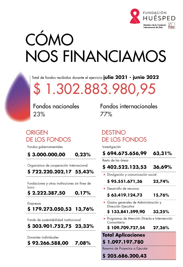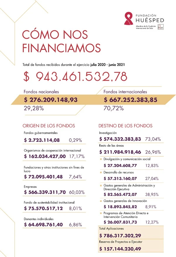 Fundación Huésped es una organización de bien público y sin fines de lucro que se sostiene gracias a las donaciones mensuales de miles de personas, el aporte de instituciones y empresas locales y el apoyo a proyectos e investigaciones a través de empresas y/o organismos de cooperación.